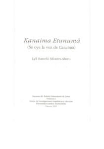 Kanaima Etunumá (Se oye la voz de Canaima) Lyll Barceló Sifontes-Abreu Separata del Boletín Universitario de Letras Volumen I Centro de Investigaciones Lingüísticas y Literarias Universidad Católica Andrés Bello Caracas 1993