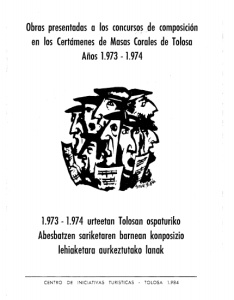 Obras presentados o los concurso~ de composición en los Certámenes de Masas Corales de To losa Años 1.973 - 1.974 1.973 - 1.974 urteeton Tolosan ospaturiko Abesbotzen sariketaren harnean konposizio lehiaketara aurkeztutako lanak CENTRO DE INICIATIVAS TURISTICAS - TOLOSA 1.984