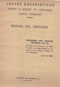 jUEVES EUCARISTICOS CENTRO "LA MERCED". PP: CAPUCHINOS CARACAS (VENEZUELA) MANUAL D~L ASOCIADO ROGUEMOS POR NUESTRO PÓNTIFICE PIO XII El Señor lo conserve y Jo llene de vida y lo haga dichoso en la tierra y no Jo deje al deseo de sus enemigos. Junio de 1958. LITOGRR IR DEL COMERCIO C. R. CRRRCRS