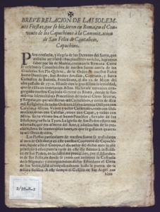 ME 3 — en” e < Ñ « A. ES LE FM AA - BREVERELACION DE LAS SOLEM. mts Ficfas,que fe bizieron en Roma,cn el Coma vento de los Capuchinos a la Canonizacion Sa de San Felix de Cantalicio, gi + Capuchino. Ara confuelo, y alegria de los Devotos del Santo,que anfioíos ant elabá celtas plaulíbles noticias, logramos - - faber por las de Madrid,comoenta Romana Corte fe celebro la Canonizacion de nueltro Santo con la de los Gioriofos San Pio Quivto , de la Orden de nueítro Padre Santo Domingo , San Andres Avelino, Cagetano , y Santa Carhalina de Bolonia, Fránciícana, el dia 22. de Mayo del año palfado de 1712. Hizofe con la graviísima folemnidad, quefe etila en lemejantes Atos. Hallavale entonces COn= gregado nueltro Capitulo General en Roma , donde fe for. mo vaa folemniísima Proceísion de todo el Clero Secular, y Regular,en quea(siltieron milCapuchinos,y cerca de dica mil Religiolos de todas Ordenes.Huvo ferenta Obiípos con Calullas,y Mitras. Veinte y ocho Cardenales, vnos con Dala maticas,otros con Caíullas ¿otros con Capas , y todos con Mitra. Enlo vitimo iba.el Sumo Pontifice , llevado de [us . Eltaficresypuelta la Tyara.La Igleñía de San Pedro eltava tan adornada,que era efmero del Arte, y admiracion de lo pres ciofoyllena de inumerables luzes,en que [e galtaron quaren. ta mil libras de cera, - Las Fieltas particulares de nueftro Santo [e trafladaron al mesde Oftabre,y en elte nueltra Convento de Capuchi. nos, dande eftá el Cuerpo,cl dia ocho del dicho mes fe dió principio a ellas;pues la tarde de efte dia fuimos ¿ la Balli. ca de San Pedro, en lucidiísima proccísion, por el Eltandare te de San Felix,en donde le jantó con nofotros la Cofradia dela Stigmata: y entregandonos dicho Eltandarte el Clera de San Sedro,falió acompañandonos hata la puerta de la miíma Baíilica. A-cfte tiempo el Caltillo-de San E” nos 23 izo 2/28.B.2