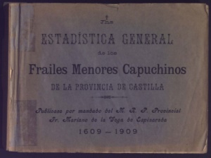 ¡ ESTADÍS "ICA GENERAL de los Frailes Menores Capuchinos DE LA os DE CASTILLA | pr Eublicaso por mandado del M. *R. <. erinoía! Eo Fr. Mariano de la “Vega de Uspinareda 1609-1909